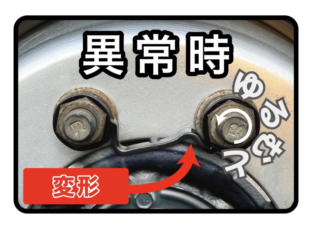 - 2つのナットを連結し、緩むと N字 → L字 に変形して緩みを一目で確認。